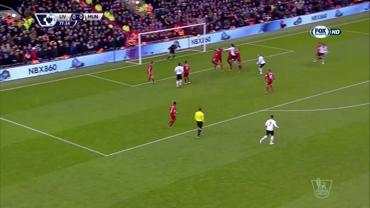 2016年鲁尼绝杀利物浦马奎尔今晚也在同样的位置进球绝杀