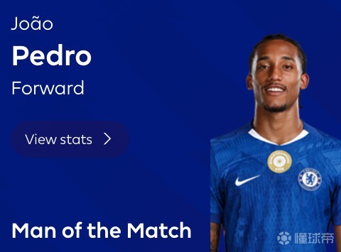 替补传射,若昂-佩德罗当选切尔西vs西汉姆全场最佳球员