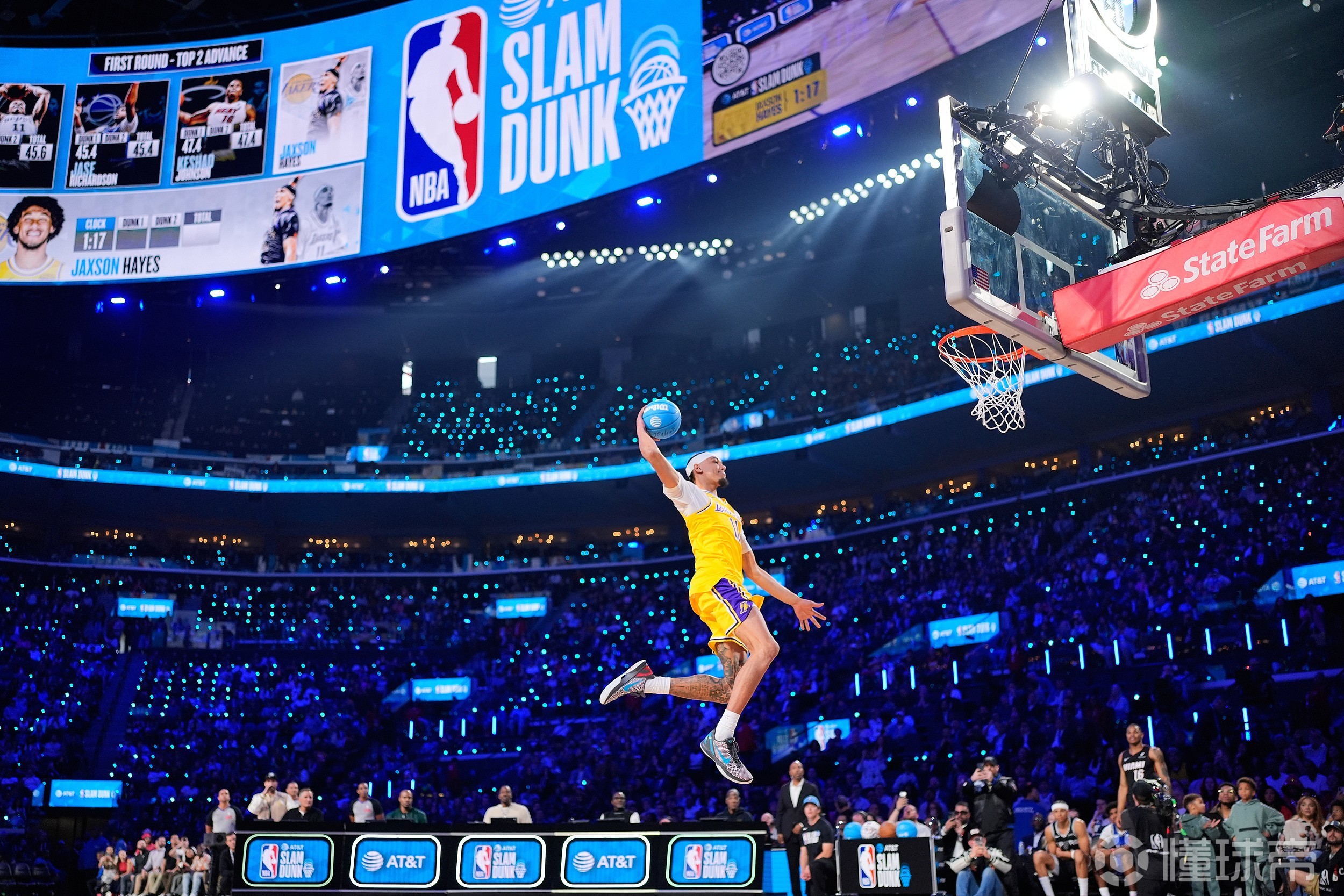本届全明星扣篮大赛在“拉胯”方面可谓贡献了不少名场面,预赛海耶斯“下快攻”、理查德森险些受伤在地上躺平。