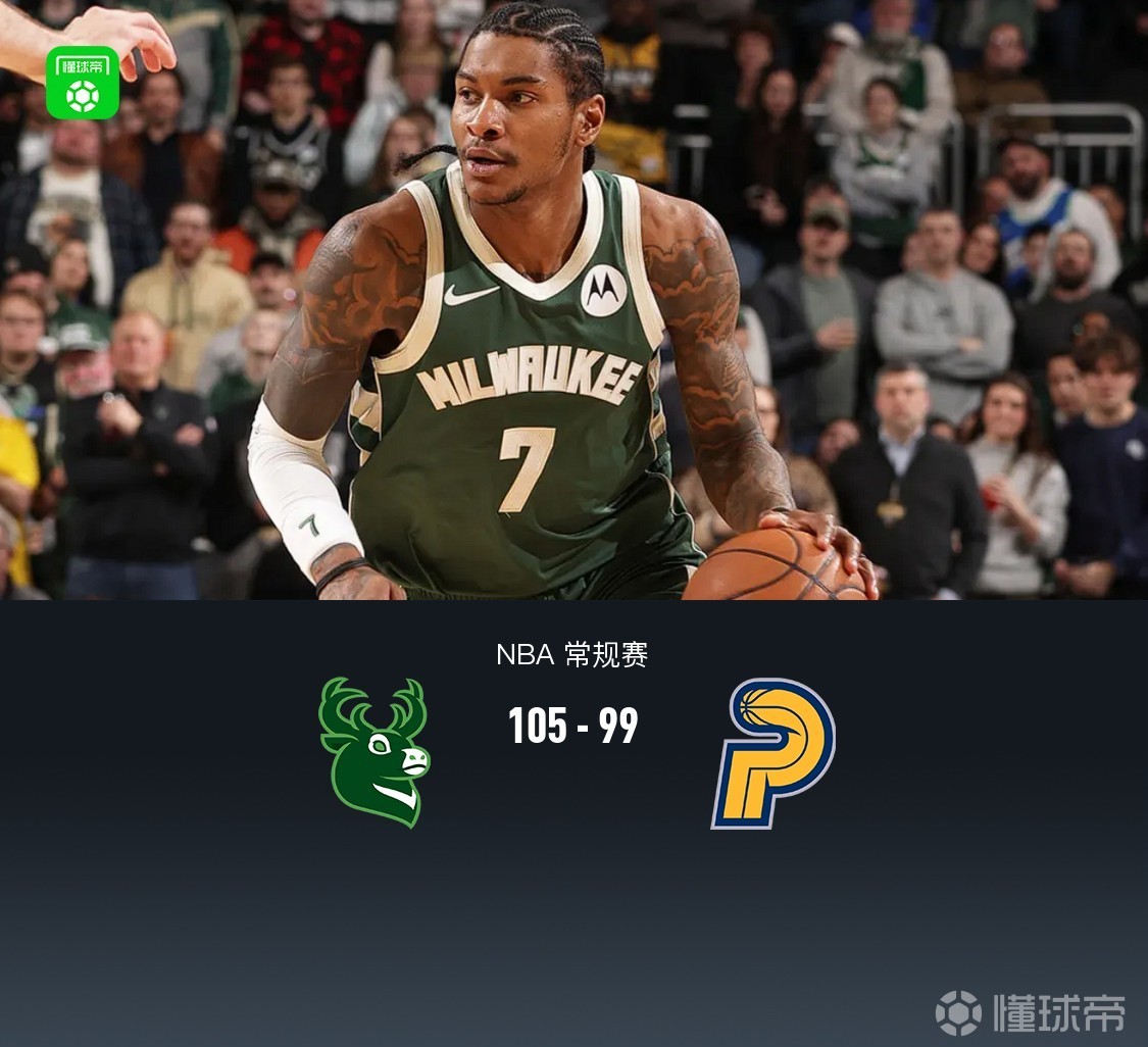 第四节雄鹿小凯文-波特拿下8分,步行者内姆布哈德拿下18分,最终雄鹿105-99战胜步行者