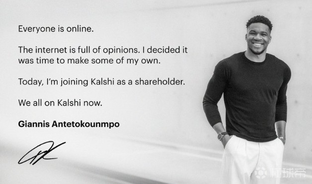 北京时间2月7日,字母哥在社媒宣布,自己将入股体育竞猜平台Kalshi Sports。