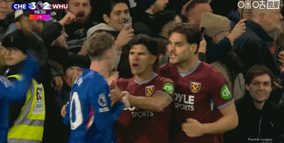 球迷实拍切尔西西汉姆冲突 帕尔默为队友挺身而出