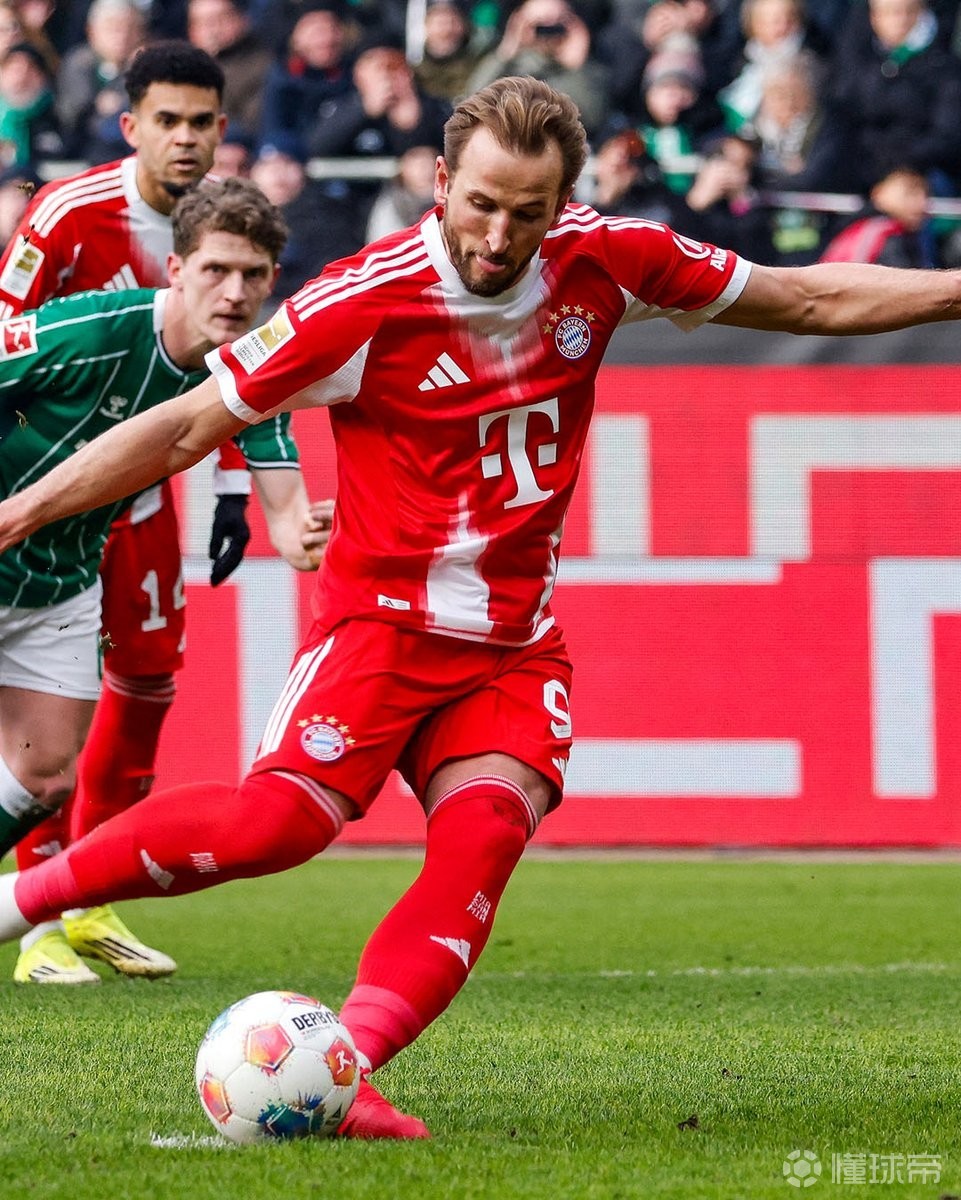 此外,凯恩自加盟拜仁以来,在德甲赛场上23次主罚点球全部命中。