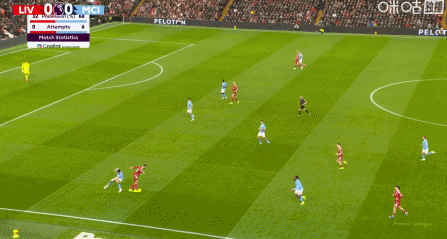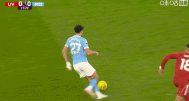 第13分钟,罗德里远射,皮球击中队友哈兰德